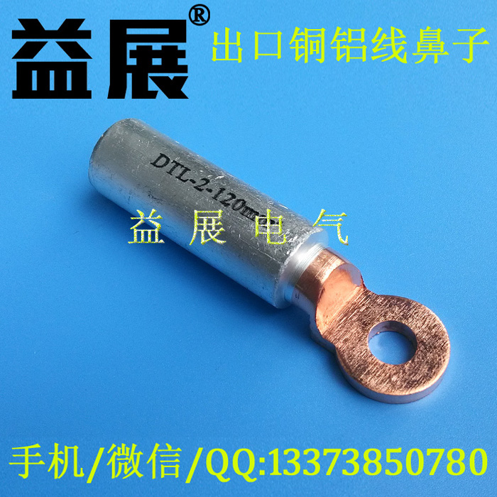 用途 :DTL系列銅鋁接線端子適用于配電裝置中各種圓型,半圓扇型鋁線,電力電纜與電氣設備銅端的過渡連接。使用鋁材為L3,銅材為T2。產品采用磨擦焊工藝制造,具有焊縫強度高,通電性能好,抗電化腐蝕,使用壽命長等等特點。
