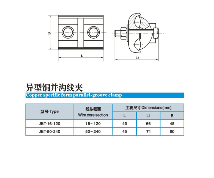 JBT異型銅并購線夾 Home您現在的位置:網站首頁 >> 產品中心 >> 金具線夾系列
