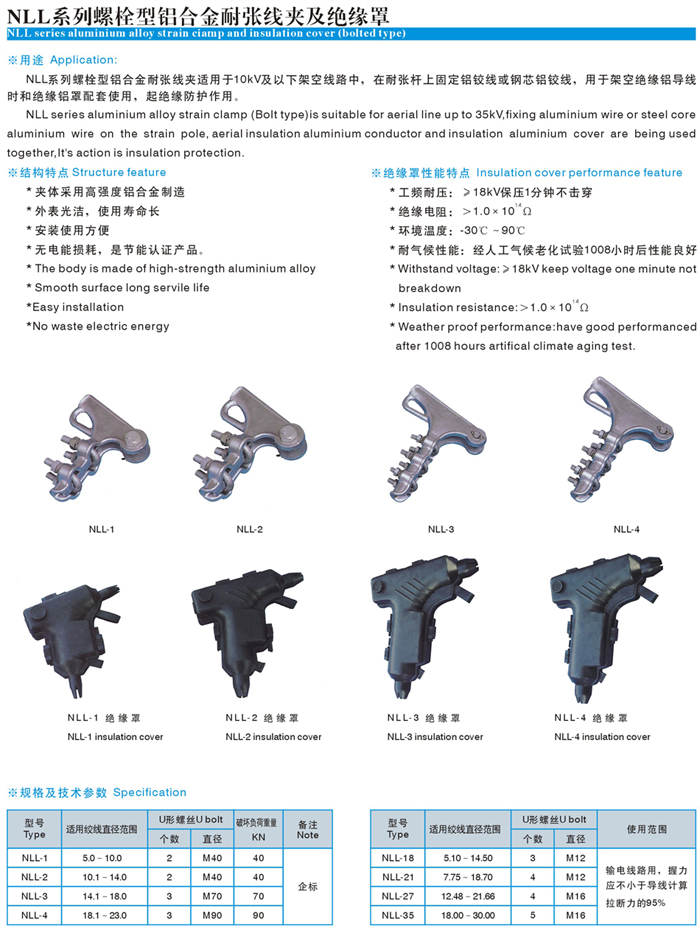螺栓型鋁合金耐張線夾及絕緣罩(NLL) Home您現(xiàn)在的位置:網(wǎng)站首頁(yè) >> 產(chǎn)品中心 >> 金具線夾系列