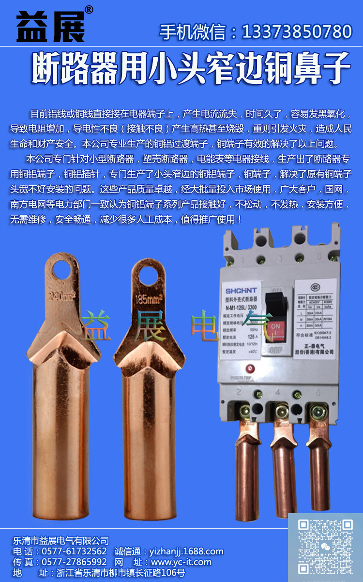 | 小頭銅鼻子規格,空開斷路器銅鼻子,C45斷路器專用銅鼻子,產品特點:小頭銅鼻子,小頭銅鋁線鼻子,是專為C45空開 斷路器定制的,能有效的解決普通銅鼻子太寬放不進去,用這款DTX小頭銅鼻子或者DTLX小頭銅鋁線鼻子就可以解決這個問題。具體產品尺寸和特點請于我公司人員聯系。 |
