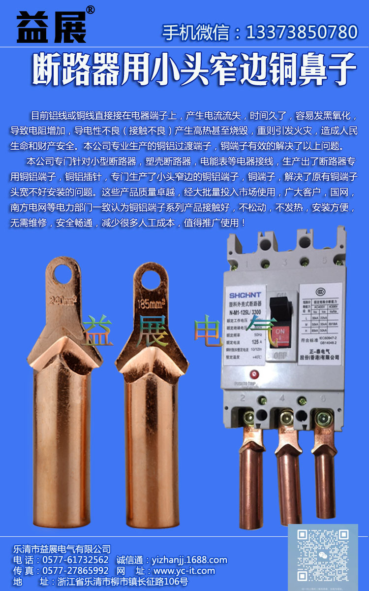 | DTX-95小頭銅鼻子,空開專用鍍錫銅鼻子,C45用銅鼻子,產(chǎn)品特點:小頭銅鼻子,小頭銅鋁線鼻子,是專為C45空開 斷路器定制的,能有效的解決普通銅鼻子太寬放不進去,用這款DTX小頭銅鼻子或者DTLX小頭銅鋁線鼻子就可以解決這個問題。具體產(chǎn)品尺寸和特點請于我公司人員聯(lián)系。 |
